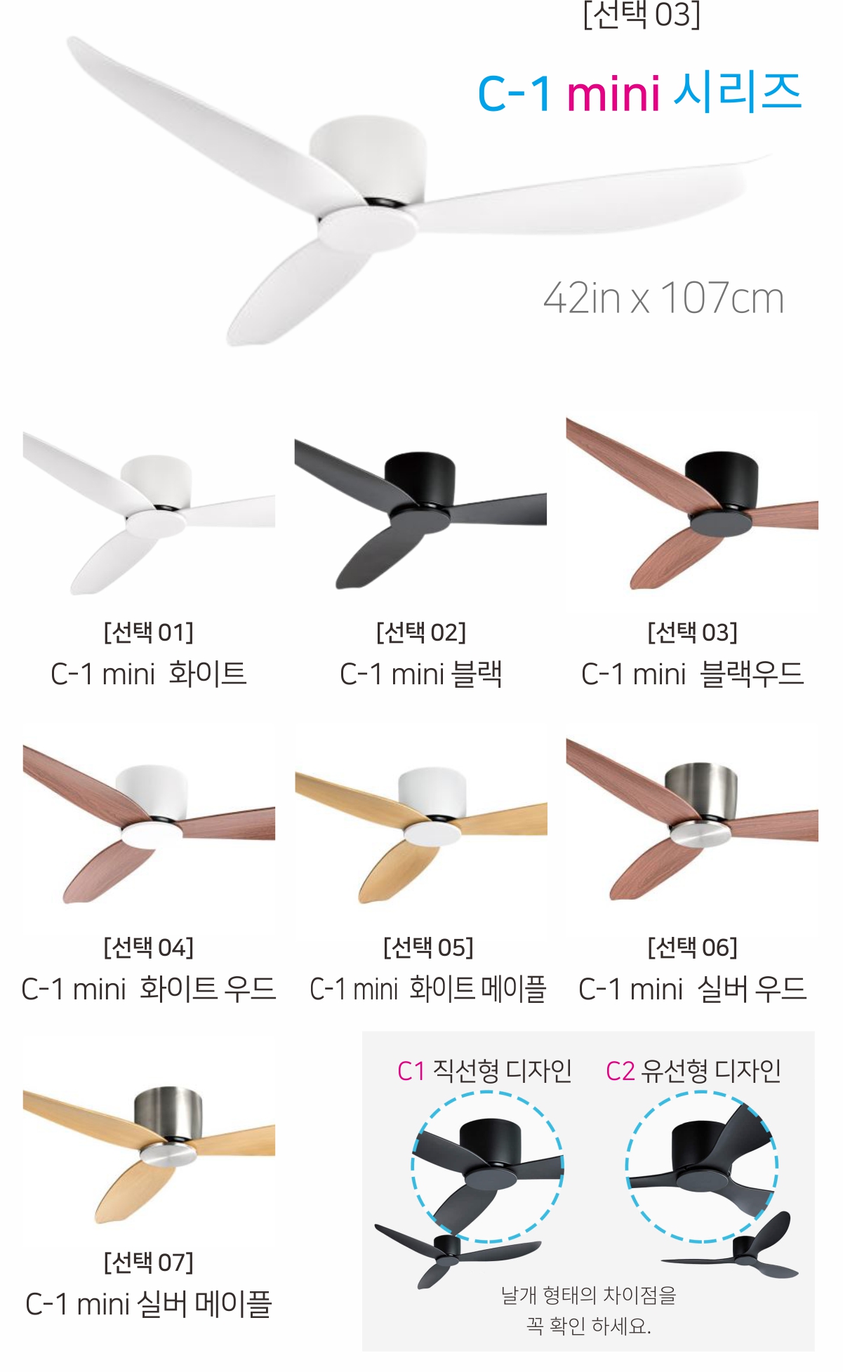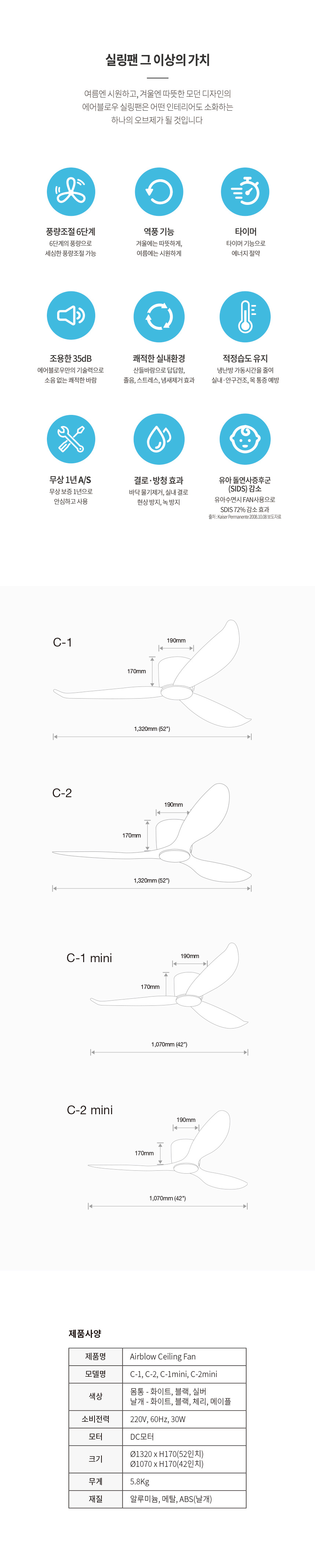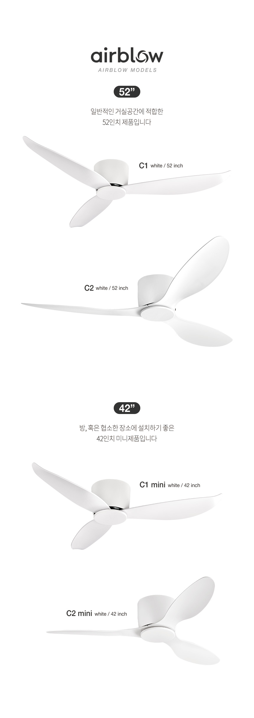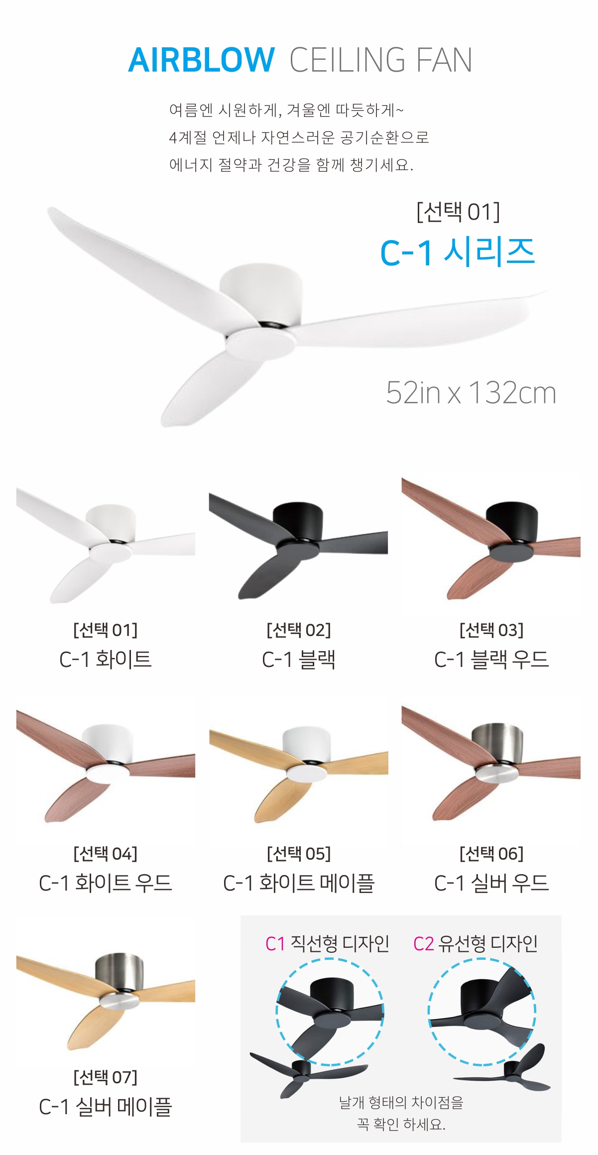 에어블로우 천장 선풍기 거실 실링팬 C-1 C-2 42인치 52인치 mini 리모컨 작동